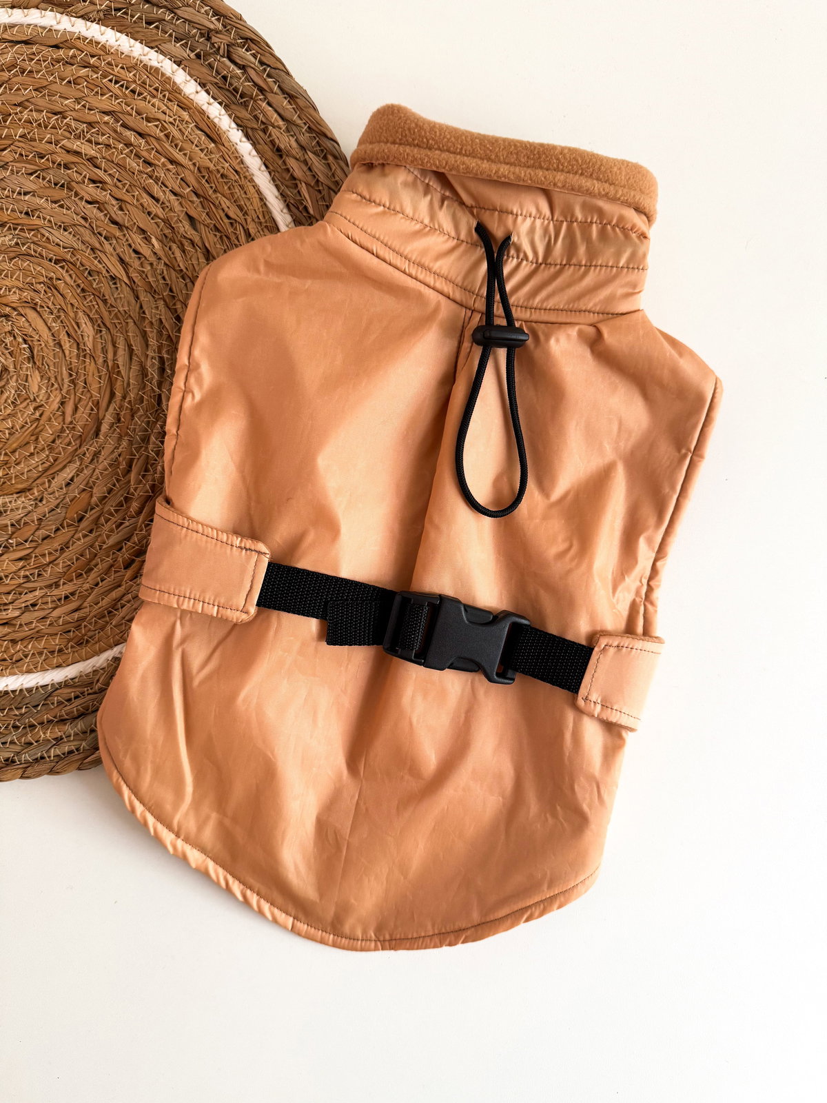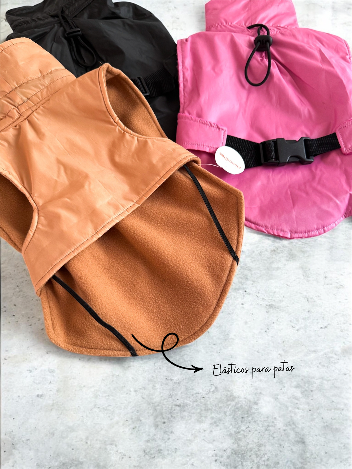 Piloto impermeable por fuera y con polar del lado de adentro, ajustable en espalda, VERIFICAR CUIDADOSAMENTE el contorno del cuello. Ya que es rígido y no cede al estirarse.